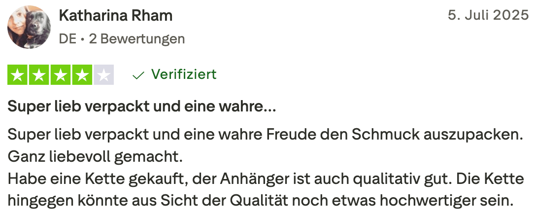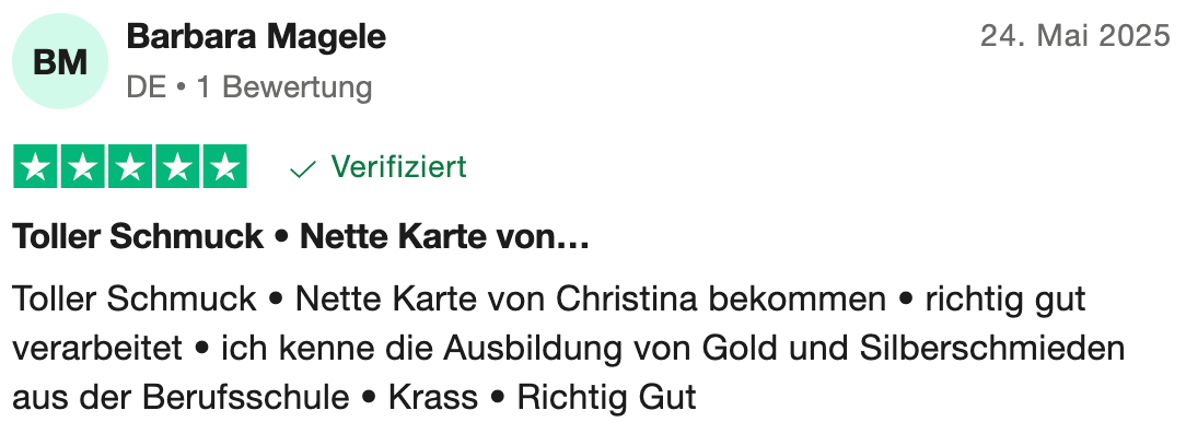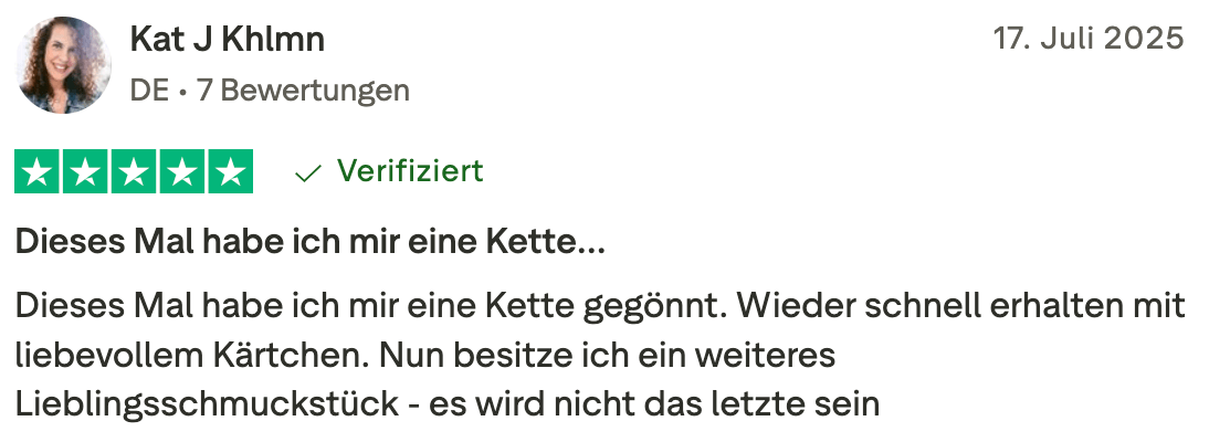 Meine Vision ist eine Welt, in der jede Frau ihre innere Stärke und Schönheit erkennt und lebt. Dafür soll dir mein Schmuck jeden Tag ein Gefühl von Kraft, Selbstliebe und Mut geben und dich auf deinem Weg begleiten.