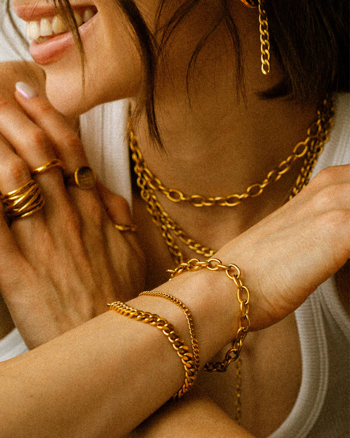 Mit dieser Kollektion möchte ich Frauen ermutigen, ihre innere Stärke (wieder) zu entdecken und stolz auf ihre einzigartige Schönheit zu sein. Die Schmuckstücke sind nicht nur zeitlos im Design, sondern genauso beständig wie unsere innere Stärke, die sie symbolisieren: Gefertigt aus robustem 316L Edelstahl, begleiten sie dich durch alle Herausforderungen des Alltags und sollen dir täglich ein Gefühl von Kraft, Selbstliebe und Inspiration geben.
